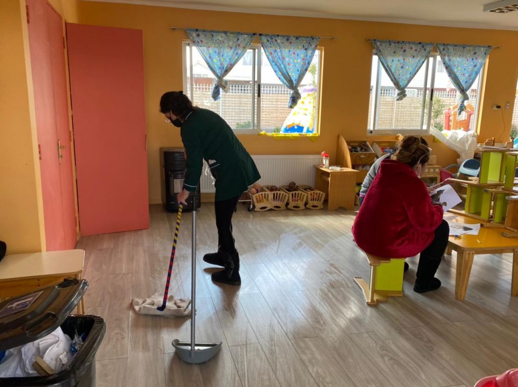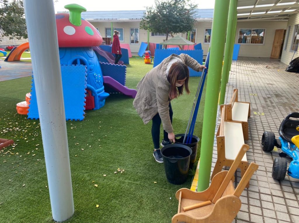 Hoy las tías del Jardín «Parque del Sol» regresaron a sus actividades diarias, después de unas merecidas vacaciones de invierno y partieron con mucha energía realizando una limpieza y sanitización de todo el recinto educacional, para estar preparadas ante la planificación que establecerá la Dirección de Educación de nuestra municipalidad. Les enviamos muchos cariños y abrazos a todas las tías de nuestros jardines infantiles.