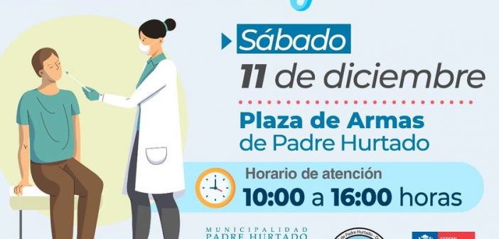 SABADO 11 DE DICIEMBRE: OPERATIVO BÚSQUEDA ACTIVA DE CASOS A TRAVÉS DE 0 By roberto rodriguez on diciembre 10, 2021 · Campañas, Salud, Sector Rural, Vecinos y Vecinas PLAZA DE ARMAS DE PADRE HURTADO 10.00 A 16.00 HORAS #PadreHurtadoSomosTodos Compartir. Twitter Facebook Google+ Pinterest LinkedIn Tumblr Email